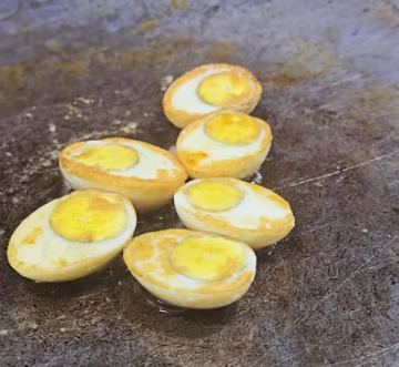 이 과정이 구운계란 특유의 단단한 식감과 고소한 맛을 만들어줍니다.