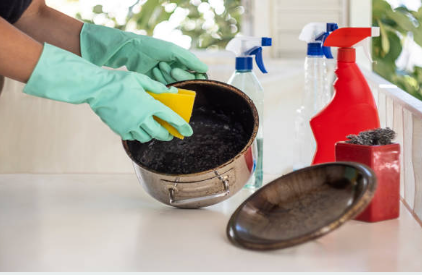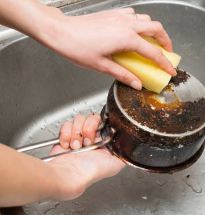 이 기름기를 잡고 남은 잔여물을 마무리하는 데 베이킹소다가 도움이 됩니다.