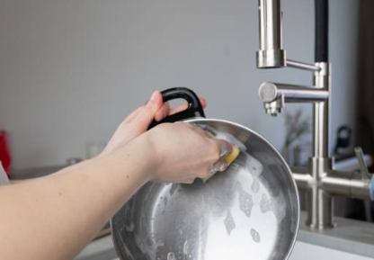특히 큰 냄비나 채반처럼 구석이 많은 제품은 뜨거운 물에 잠깐 담가두면 잔여물이 부드러워져서 세척이 쉬워집니다.